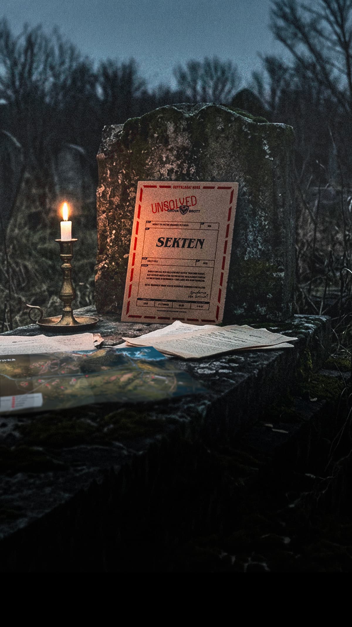 Bestill en uløst cold case med åstedsundersøkelser, politiavhør, mystiske bevis, kart og mye mer. Det perfekte spillet for middag med venner, date night eller familiemoro! 🍷